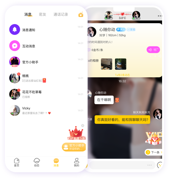 【视频约会】双方有意即可开启视频约会,高效帮助感情升温。